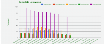 Eine graphische Darstellung einer Einzelvertragsauswertung kann nach unterschiedlichen Kriterien erfolgen. Die nachfolgende Abbildung zeigt eine Auswertung nach fixen und variablen Vertragskosten für alle vertragsschliessende Organisationen (Firmen) im Unternehmen. Aus Sicht eines Controller für das gesamte Unternehmen können die Vertragskostendaten auch je Unternehmenseinheit dargestellt werden.